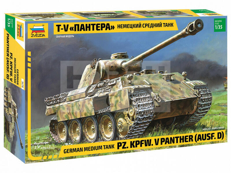 Zvezda Military Panther Ausf. D. makett 1:35 (3678Z) Makett méretarány: 1:35 Alkatrész darabszám: 698 Makett hosszúsága: 24,7 cm A Zvezda a kiváló műanyag modelljei kapcsán vált világszerte ismerté. Makettei a legnépszerűbb méretarányokban érhető el. Elsősorban 2. világháborús gépezetek és kiegészítőik kapcsán érdemes megemlíteni a nevét, de a történelmi makettekb