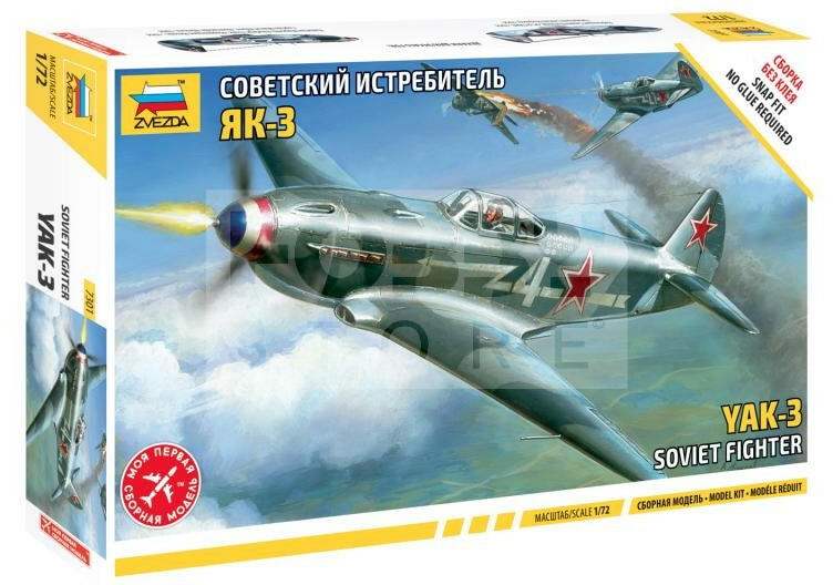 Zvezda Airplanes Yak-3 Soviet Fighter makett 1:72 (7301Z) Makett méretarány: 1:72 Alkatrész darabszám: 46 Makett hosszúsága: 11,8 cm A Zvezda a kiváló műanyag modelljei kapcsán vált világszerte ismerté. Makettei a legnépszerűbb méretarányokban érhető el. Elsősorban 2. világháborús gépezetek és kiegészítőik kapcsán érdemes megemlíteni a nevét, de a történelmi maket