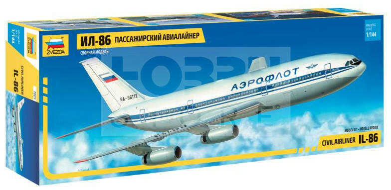 Zvezda Iljusin IL-86 makett 1:144 (7001Z) Makett méretarány: 1:144 Alkatrész darabszám: 74 Makett hosszúsága: 41,8 cm A Zvezda a kiváló műanyag modelljei kapcsán vált világszerte ismerté. Makettei a legnépszerűbb méretarányokban érhető el. Elsősorban 2. világháborús gépezetek és kiegészítőik kapcsán érdemes megemlíteni a nevét, de a történelmi makettekből is szé
