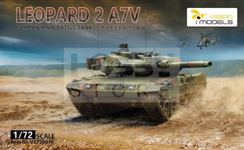 Vespid Models German Main Battle Tank Leopard 2 A7V makett 1:72 (VS720016) Makett méretarány: 1:72 Vespid Models makettjeit magas minőség és részletgazdag kidolgozottság jellemzi. Kínálatukban harcjárműveket találhatunk meg változatos méretarányban. Kiváló választás lehet mind kezdők mind profi modellezőknek. Festést és ragasztást igénylő makett. A modellek összeállít
