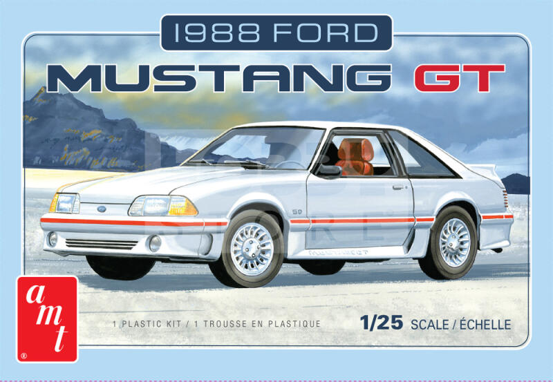 AMT 1988 Ford Mustang 1:25 autó makett AMT1216 Szeretenél egy igazi amerikai izomautót építeni? Nos, az AMT makettek széles palettáján szinte csak ilyeneket fogsz találni. Az AMT amerikai makett gyártó mely kifejezetten autó makettek gyártásával foglalkozik az 30-60 évektől indulva napjainkig. Az autók mellett természetesen megjelennek a szortimentben a Star Trek űrhajói és e