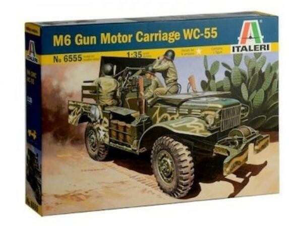 Italeri M6 Gun Motor Carriage WC-55 hari jármű 1/35 makett készlet. A műanyag modell készlet összeszerelést és festését igényel. A ragasztó és a festék nem tartozék. Tartalom: Jármű makett, matrica készletet, elkészítési útmutató. Italeri M6 Gun Motor Carriage WC-55 hari jármű 1/35 makett készlet. A műanyag modell készlet összeszerelést és festését igényel. A raga