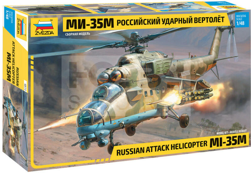 Zvezda MIL Mi-35 M "Hind E" makett 1:48 (4813Z) Makett méretarány: 1:48 Alkatrész darabszám: 373 Makett hosszúsága: 44,7 cm A Zvezda a kiváló műanyag modelljei kapcsán vált világszerte ismerté. Makettei a legnépszerűbb méretarányokban érhető el. Elsősorban 2. világháborús gépezetek és kiegészítőik kapcsán érdemes megemlíteni a nevét, de a történelmi makettekből i