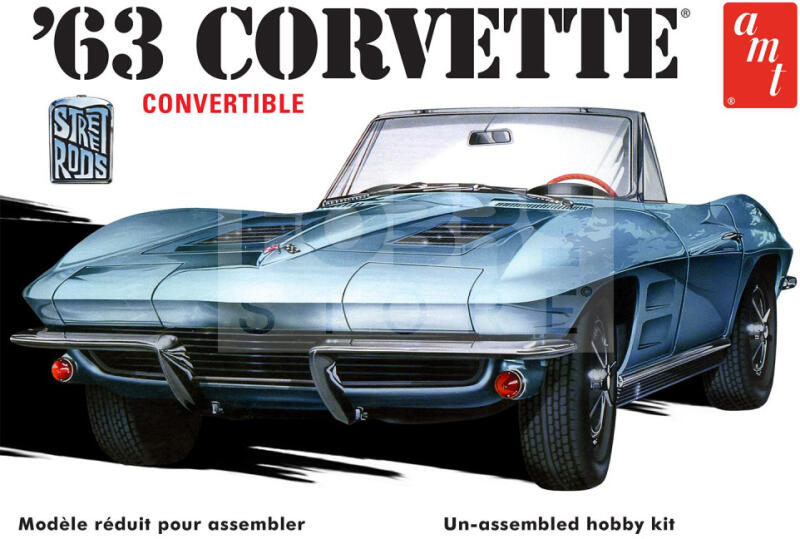 AMT 1963 CHEVY CORVETTE CONVERTIBLE 1:25 autó makett AMT1335 Szeretenél egy igazi amerikai izomautót építeni? Nos, az AMT makettek széles palettáján szinte csak ilyeneket fogsz találni. Az AMT amerikai makett gyártó mely kifejezetten autó makettek gyártásával foglalkozik az 30-60 évektől indulva napjainkig. Az autók mellett természetesen megjelennek a szortimentben a Star Trek