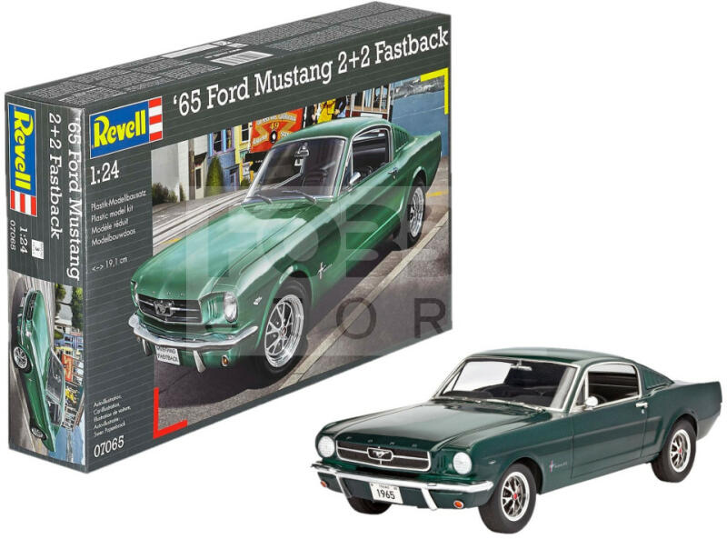 Revell - 1965 Ford Mustang 2+2 Fastback (1:24) autó makett 7065R Makett méretarány: 1:24 Alkatrész darabszám: 82 Hosszúság: 191 mm Szélesség: - mm Magasság: - mm Festést és ragasztást igénylő méretarányos műanyag makett. A szükséges kiegészítőket, mint festék, ragasztó a készlet nem tartalmazza . Gyártó: Revell A Revell tradicionális nagy múltú makett gyártó. Már