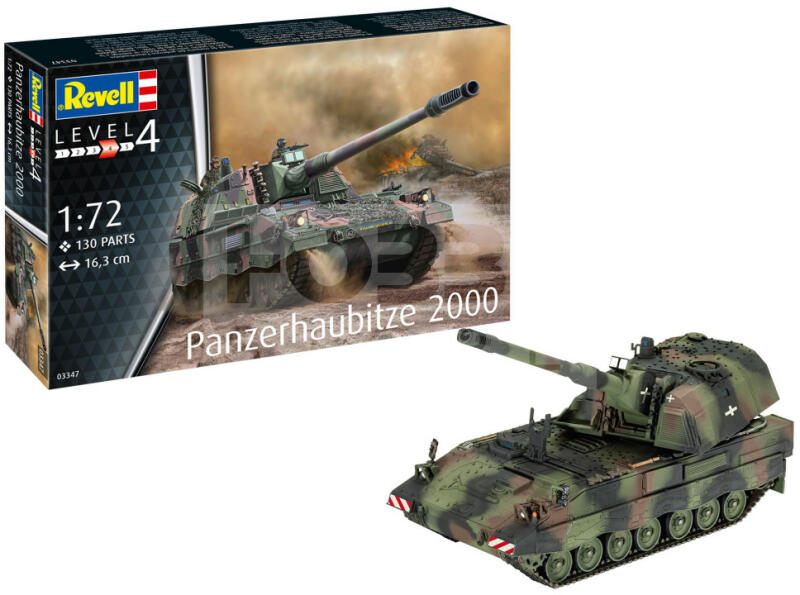 Revell Panzerhaubitze 2000 1:72 harcjármű makett 03347R Makett méretarány: 1:72 Alkatrész darabszám: 130 Makett hossúság: 16,3 cm Festést és ragasztást igénylő műanyag makett. A szükséges kiegészítőket, mint festék, ragasztó a készlet nem tartalmazza . Gyártó: Revell A Revell tradicionális nagy múltú makett gyártó. Már több mint 60 éve kápráztatja el a rajongóit