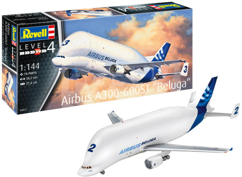 Revell Airbus A300-600ST Beluga 1:144 repülő makett 03817R Makett méretarány: 1:144 Alkatrész darabszám: 78 Makett hossúság: 38,2 cm Festést és ragasztást igénylő műanyag makett. A szükséges kiegészítőket, mint festék, ragasztó a készlet nem tartalmazza . Gyártó: Revell A Revell tradicionális nagy múltú makett gyártó. Már több mint 60 éve kápráztatja el a rajongó