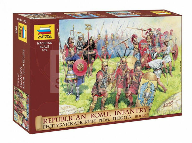 Zvezda Roman Republican Infantry makett 1:72 (8034Z) Makett méretarány: 1:72 Alkatrész darabszám: 40 Makett hosszúsága: 2,4 cm A Zvezda a kiváló műanyag modelljei kapcsán vált világszerte ismerté. Makettei a legnépszerűbb méretarányokban érhető el. Elsősorban 2. világháborús gépezetek és kiegészítőik kapcsán érdemes megemlíteni a nevét, de a történelmi makettekbő