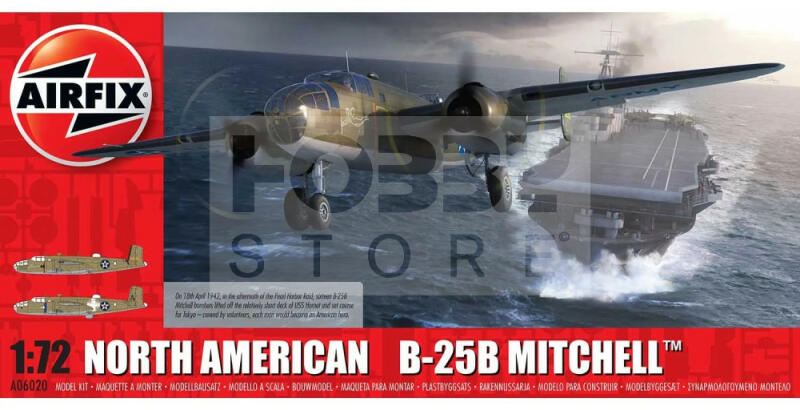 Airfix North American B25B Mitchell repülőgép makett 1:72 (A06020) Makett méretarány: 1:72 Alkatrész darabszám: 166 Makett hossúság: 23,3 cm Festést és ragasztást igénylő műanyag makett. A szükséges kiegészítőket, mint festék, ragasztó a készlet nem tartalmazza . Gyártó: Airfix Az Airfix egy tradicionális brit fröccsöntött műanyag makett gyártó cég. Az Egyesült Ki