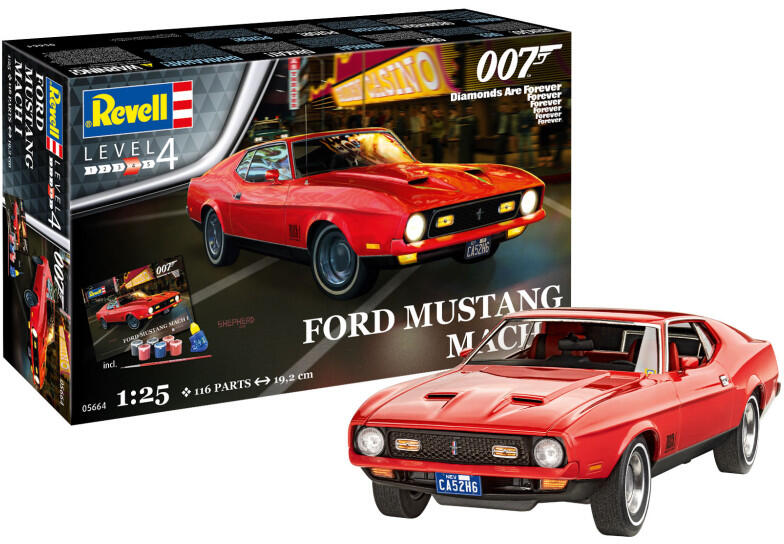 Méretarány: 1:25 Életkori ajánlás: 12+ Alkatrészek száma: 129 Hossz: 192 mm Szélesség: 75 mm Magasság: 53 mm Szint: 4 Festést, ragasztást igénylő makett. A szett tartalmazza az összeépítéshez szükséges festékeket, ragasztót és ecsetet. Ezzel az ajándékkészlettel testközelből élheti át a híres James Bond-film, a "Diamonds are Forever" akcióit és kalandjait. Az 1:25