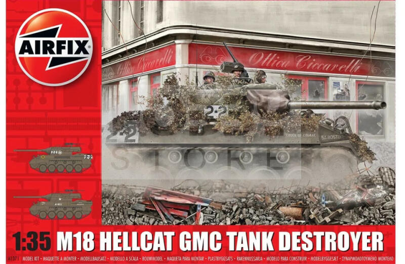 Airfix M-18 Hellcat harcjármű makett 1:35 (A1371) Makett méretarány: 1:35 Makett hossúság: 15 cm Festést és ragasztást igénylő műanyag makett. A szükséges kiegészítőket, mint festék, ragasztó a készlet nem tartalmazza . Gyártó: Airfix Az Airfix egy tradicionális brit fröccsöntött műanyag makett gyártó cég. Az Egyesült Királyságan nevük egybeforrt a makettezés fog
