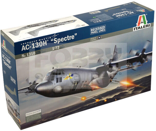 Italeri AC - 130H SPECTRE 1:72 repülőgép makett 1310IT Makett méretarány: 1:72 Az Italeri makett gyártó cég több mint 60 éve kápráztatja el a makettezni vágyókat műanyag termékeikkel. Történelmi maketteik megalkotását pontos kutatási munkák előzik meg, így válhattak ennyire népszerűvé. Ugyanakkor széles termékpaletta jellemzi őket: a modern gépjárművek szerelmesei