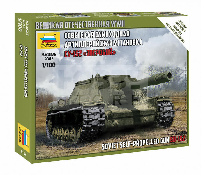 Zvezda Self-propelled Gun SU-152 makett 1:100 (6182) Makett méretarány: 1:100 Alkatrész darabszám: 13 Makett hosszúsága: 9 cm A Zvezda a kiváló műanyag modelljei kapcsán vált világszerte ismerté. Makettei a legnépszerűbb méretarányokban érhető el. Elsősorban 2. világháborús gépezetek és kiegészítőik kapcsán érdemes megemlíteni a nevét, de a történelmi makettekből