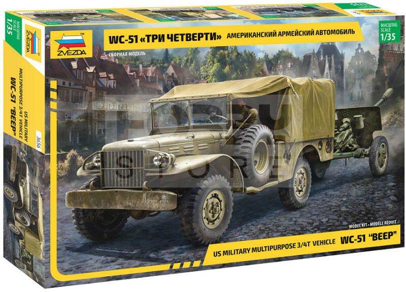 Zvezda Dodge WC-51 "Beep" makett 1:35 (3656Z) Makett méretarány: 1:35 Alkatrész darabszám: 270 Makett hosszúsága: 12,1 cm A Zvezda a kiváló műanyag modelljei kapcsán vált világszerte ismerté. Makettei a legnépszerűbb méretarányokban érhető el. Elsősorban 2. világháborús gépezetek és kiegészítőik kapcsán érdemes megemlíteni a nevét, de a történelmi makettekből is