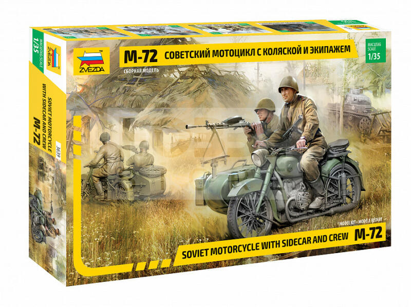 Zvezda Military Soviet WWII Motorcycle M-72 makett 1:35 (3639Z) Makett méretarány: 1:35 Alkatrész darabszám: 138 Makett hosszúsága: 6,8 cm A készlet az építéshez szükséges makett ragasztót, ecsetet és makett festéket nem tartlmazza. A Zvezda a kiváló műanyag modelljei kapcsán vált világszerte ismerté. Makettei a legnépszerűbb méretarányokban érhető el. Elsősorban 2. vi