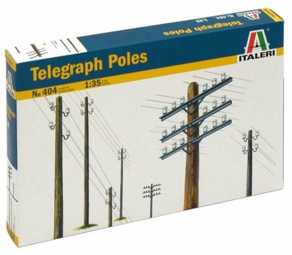 1:35 méretarányú Fa távközlési oszlopok makett. A makett műanyag részekből ragasztható össze. Az elkészítéshez szükséges festékeket és ragasztót a készlet nem tartalmazza.