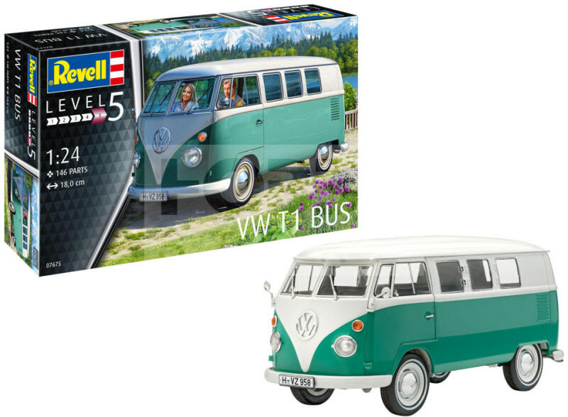 Revell Model Set VW T1 Bus 1:24 autó makett 67675R Makett méretarány: 1:24 Alkatrész darabszám: 146 Makett hossúság: 18 cm Festést és ragasztást igénylő műanyag makett. A készlet az alap színeket (Revell Aqua Color), ragasztót illetve ecsetet tartalmaz . Gyártó: Revell A Revell tradicionális nagy múltú makett gyártó. Már több mint 60 éve kápráztatja el a rajongóit term