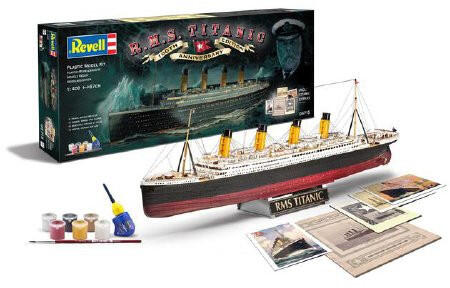 Az R. M. S. Titanic brit Olympic osztályú utasszállító hajó, korának legnagyobb utasszállító óceánjárója volt. Elsüllyeszthetetlennek tartott rekeszes hajótörzzsel rendelkezett, ennek ellenére mégis elsüllyedt első útján, miután összeütközött egy jégheggyel, 1912. április 14-én. A Titanic 100. évfordulójára a Revell egy ajándék szettel kedveskedik a gyűjtőknek