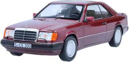 MERCEDES 300 CE-24 COUPÉ C124 (1988-1992 ) MODELLAUTÓ , A GYÁR ÁLTAL FORGALMAZOTT TERMÉK A 300 CE-24 miniatűr modellje autentikus színre van festve, és minden belső részletet hűen ábrázol. Az ajtók, a motorháztető és a csomagtérajtó kinyitható, így betekinthetünk az autó belsejébe. Sorozat : 300 CE-24 Coupé - C124 Méretarány : 1:18 Hosszúság : kb. 25,9 cm Anyag : Prés
