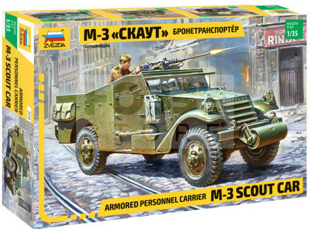 Zvezda M-3 Armored Scout Car makett 1:35 (3519Z) Makett méretarány: 1:35 Alkatrész darabszám: 171 Makett hosszúsága: 16 cm A Zvezda a kiváló műanyag modelljei kapcsán vált világszerte ismerté. Makettei a legnépszerűbb méretarányokban érhető el. Elsősorban 2. világháborús gépezetek és kiegészítőik kapcsán érdemes megemlíteni a nevét, de a történelmi makettekből is
