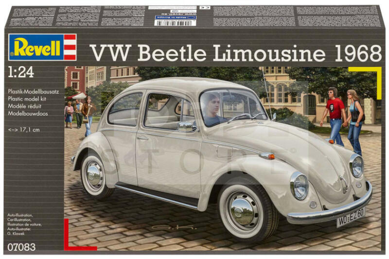 Revell VW Beetle Limousine 1968 1:24 autó makett 07083R Makett méretarány: 1:24 Alkatrész darabszám: 125 Makett hossúság: 17,1 cm Festést és ragasztást igénylő műanyag makett. A szükséges kiegészítőket, mint festék, ragasztó a készlet nem tartalmazza . Gyártó: Revell A Revell tradicionális nagy múltú makett gyártó. Már több mint 60 éve kápráztatja el a rajongóit t