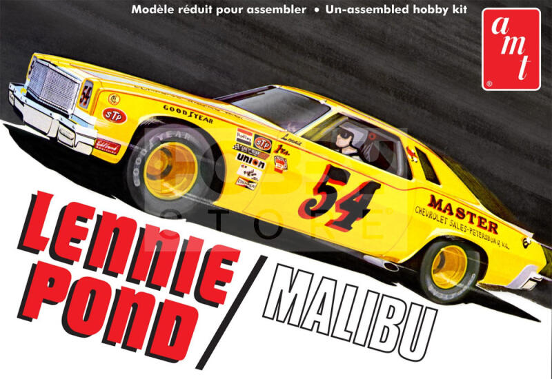 AMT LENNIE POND 1974 CHEVY MALIBU STOCK CAR 1:25 autó makett AMT1352 Szeretenél egy igazi amerikai izomautót építeni? Nos, az AMT makettek széles palettáján szinte csak ilyeneket fogsz találni. Az AMT amerikai makett gyártó mely kifejezetten autó makettek gyártásával foglalkozik az 30-60 évektől indulva napjainkig. Az autók mellett természetesen megjelennek a szortimentben a Sta
