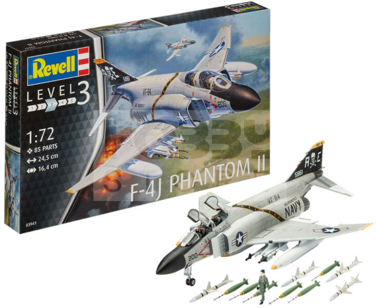 Revell F-4J Phantom US Navy 1:72 repülő makett 03941R Makett méretarány: 1:72 Alkatrész darabszám: 85 Makett hossúság: 24,5 cm Festést és ragasztást igénylő műanyag makett. A szükséges kiegészítőket, mint festék, ragasztó a készlet nem tartalmazza . Gyártó: Revell A Revell tradicionális nagy múltú makett gyártó. Már több mint 60 éve kápráztatja el a rajongóit ter
