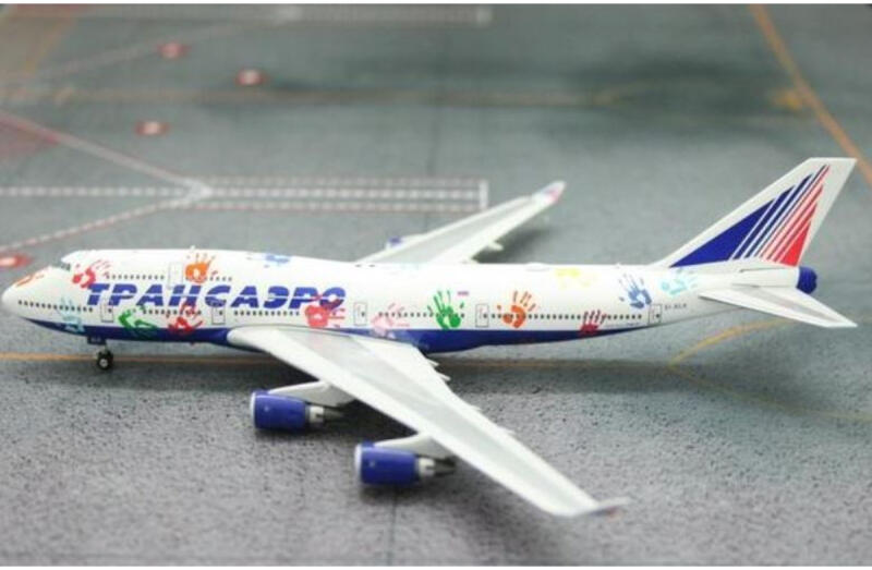 Boeing 747-400 Transaero Airlines "Flight of Hope" modellKiváló minőségű fém repülőgépmodell. Modern nyomdai nyomtatási technológiával gyártva. A modell futóművekkel és antennákkal is rendelkezik. Tartóállványa nincs!Anyaga: fémMérete: 17,7 cmMegjelenés: 2014.03. 05. Modelljeink épségét a szállítás előtt ellenőrizzük, majd a dobozt védőzárral látjuk el. A gyári