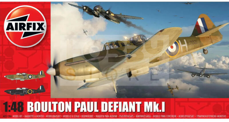 Airfix Boulton Paul Defiant Mk. 1 repülőgép makett 1:48 (A05128A) Makett méretarány: 1:48 Alkatrész darabszám: 106 Makett hossúság: 22,4 cm Festést és ragasztást igénylő műanyag makett. A szükséges kiegészítőket, mint festék, ragasztó a készlet nem tartalmazza . Gyártó: Airfix Az Airfix egy tradicionális brit fröccsöntött műanyag makett gyártó cég. Az Egyesült Kir