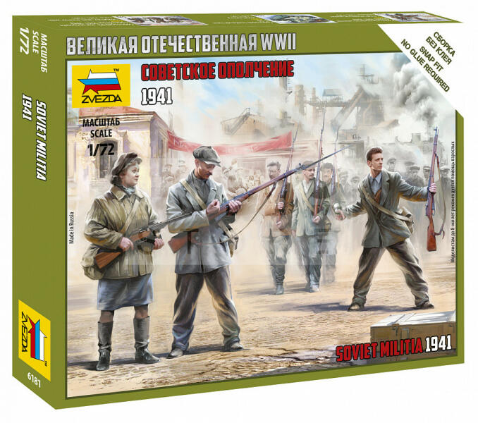 Zvezda Soviet Militia 1941 makett 1:72 (6181Z) Makett méretarány: 1:72 Alkatrész darabszám: 22 Makett hosszúsága: 2,4 cm A Zvezda a kiváló műanyag modelljei kapcsán vált világszerte ismerté. Makettei a legnépszerűbb méretarányokban érhető el. Elsősorban 2. világháborús gépezetek és kiegészítőik kapcsán érdemes megemlíteni a nevét, de a történelmi makettekből is s