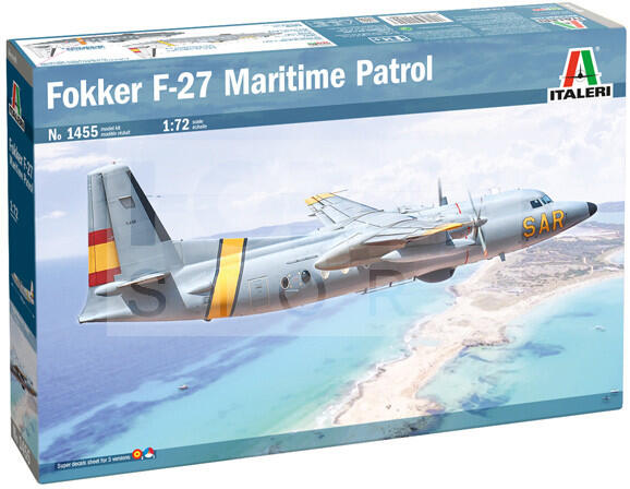 Italeri Fokker F-27 Maritime Patrol 1:72 repülőgép makett 1455IT Makett méretarány: 1:72 Az Italeri makett gyártó cég több mint 60 éve kápráztatja el a makettezni vágyókat műanyag termékeikkel. Történelmi maketteik megalkotását pontos kutatási munkák előzik meg, így válhattak ennyire népszerűvé. Ugyanakkor széles termékpaletta jellemzi őket: a modern gépjárművek s