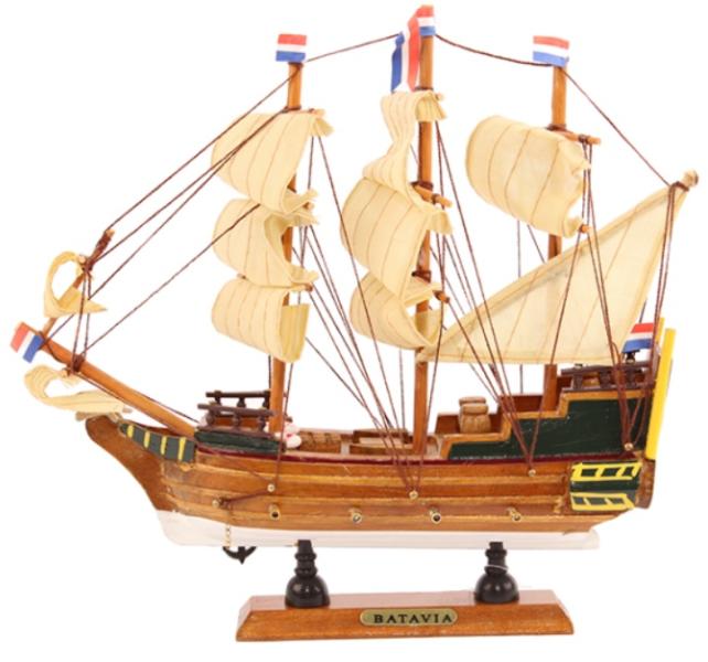 BATAVIA Hajómakett MÉRETE: 24 x 6 x 23 magas cm ANYAGA: akácia - más trópusi fák TARTOZÉKOK: a hajómaketthez esztétikus névtáblát és fából készült talpazatot biztosítunk. A talpazatnak köszönhetően, könnyen elhelyezhető a bútoron. CSOMAGOLÁS: a makettet összeszerelve, biztonságos dobozban forgalmazzuk. A hajó története A Batavia a kor egyik legnagyobb hajója volt. Az