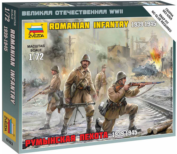 Pontrúgás Zvezda 6163 román gyalogság további modelleket. 1:72. A csomag tartalmaz 21 db.