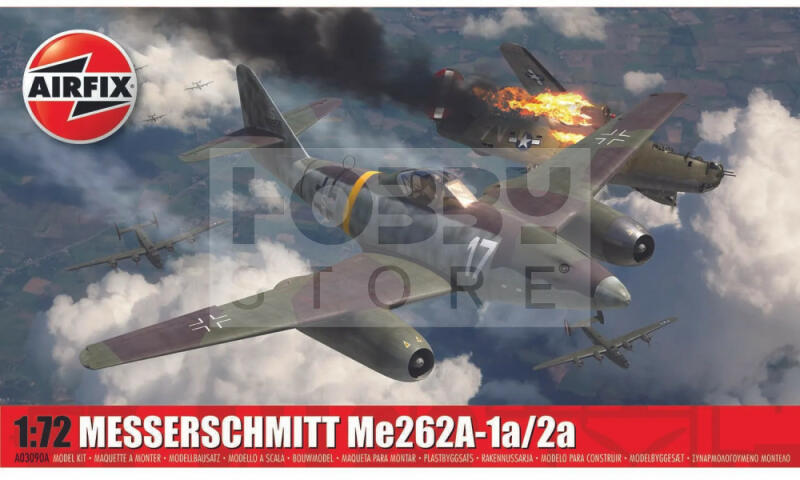 Airfix - Messerschmitt Me262A-1a/2a repülőgép makett 1:72 (A03090A) Makett méretarány: 1:72 Alkatrész darabszám: 65 Makett hossúság: 14,8 cm Festést és ragasztást igénylő műanyag makett. A szükséges kiegészítőket, mint festék, ragasztó a készlet nem tartalmazza . Gyártó: Airfix Az Airfix egy tradicionális brit fröccsöntött műanyag makett gyártó cég. Az Egyesült Ki