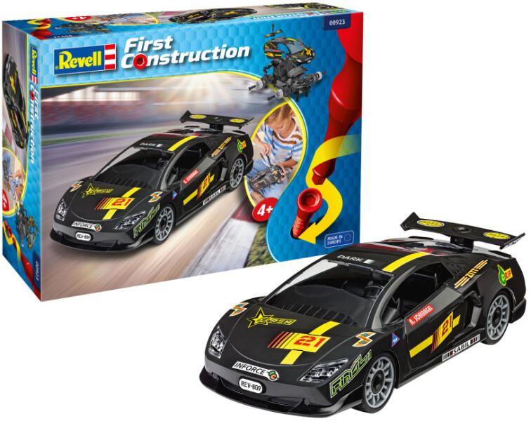 Mint egy igazi szerelő a boxutcában, te magad szereled össze ezt a klassz Revell First Construction versenyautót. A fekete versenyautót 22 színes különálló alkatrészből lépésről lépésre összeszereljük és csavarozzuk, majd díszítjük rengeteg matricával. Hossza kb 24 cm. Gyártó: Revell
