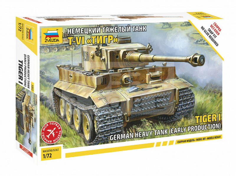 Zvezda Tiger I German Tank makett 1:72 (5002Z) Makett méretarány: 1:72 Alkatrész darabszám: 63 Makett hosszúsága: 12,5 cm A Zvezda a kiváló műanyag modelljei kapcsán vált világszerte ismerté. Makettei a legnépszerűbb méretarányokban érhető el. Elsősorban 2. világháborús gépezetek és kiegészítőik kapcsán érdemes megemlíteni a nevét, de a történelmi makettekből is