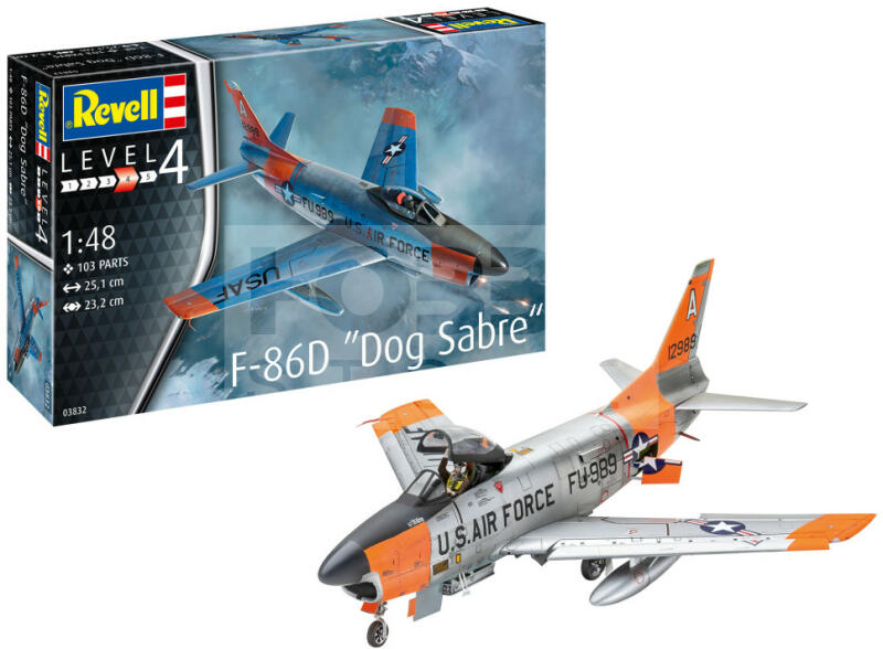 Revell F-86D Dog Sabre 1:48 repülő makett 03832R Makett méretarány: 1:48 Alkatrész darabszám: 103 Makett hossúság: 25,1 cm Festést és ragasztást igénylő műanyag makett. A szükséges kiegészítőket, mint festék, ragasztó a készlet nem tartalmazza . Gyártó: Revell A Revell tradicionális nagy múltú makett gyártó. Már több mint 60 éve kápráztatja el a rajongóit termék