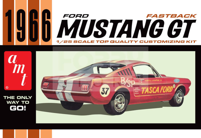 AMT 1966 FORD MUSTANG FASTBACK 2+2 1:25 autó makett AMT1305 Szeretenél egy igazi amerikai izomautót építeni? Nos, az AMT makettek széles palettáján szinte csak ilyeneket fogsz találni. Az AMT amerikai makett gyártó mely kifejezetten autó makettek gyártásával foglalkozik az 30-60 évektől indulva napjainkig. Az autók mellett természetesen megjelennek a szortimentben a Star Trek ű