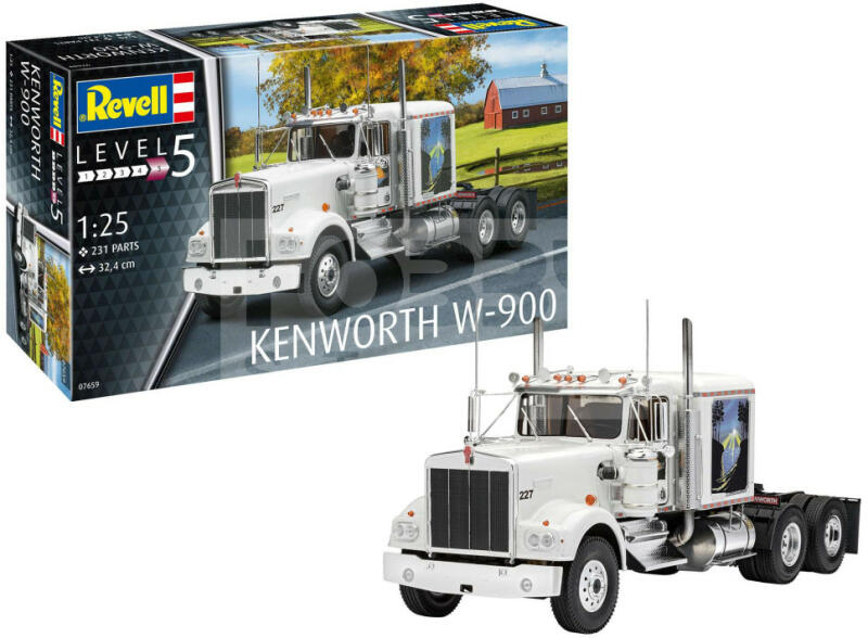 Revell Kenworth W-900 1:72 autó makett 07659R Makett méretarány: 1:72 Alkatrész darabszám: 231 Makett hossúság: 32,4 cm Festést és ragasztást igénylő műanyag makett. A szükséges kiegészítőket, mint festék, ragasztó a készlet nem tartalmazza . Gyártó: Revell A Revell tradicionális nagy múltú makett gyártó. Már több mint 60 éve kápráztatja el a rajongóit termékeive