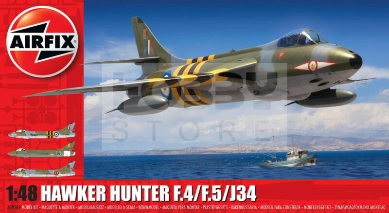 Airfix Hawker Hunter F. 4/F. 5/J. 34 repülőgép makett 1:48 (A09189) Makett méretarány: 1:48 Alkatrész darabszám: 124 Makett hossúság: 29,1 cm Festést és ragasztást igénylő műanyag makett. A szükséges kiegészítőket, mint festék, ragasztó a készlet nem tartalmazza . Gyártó: Airfix Az Airfix egy tradicionális brit fröccsöntött műanyag makett gyártó cég. Az Egyesült K