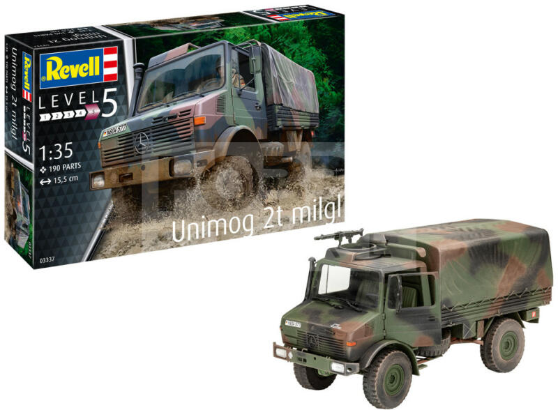 Revell Unimog 2T milgl 1:35 harcjármű makett 03337R Makett méretarány: 1:35 Alkatrész darabszám: 190 Makett hossúság: 15,5 cm Festést és ragasztást igénylő műanyag makett. A szükséges kiegészítőket, mint festék, ragasztó a készlet nem tartalmazza . Gyártó: Revell A Revell tradicionális nagy múltú makett gyártó. Már több mint 60 éve kápráztatja el a rajongóit term