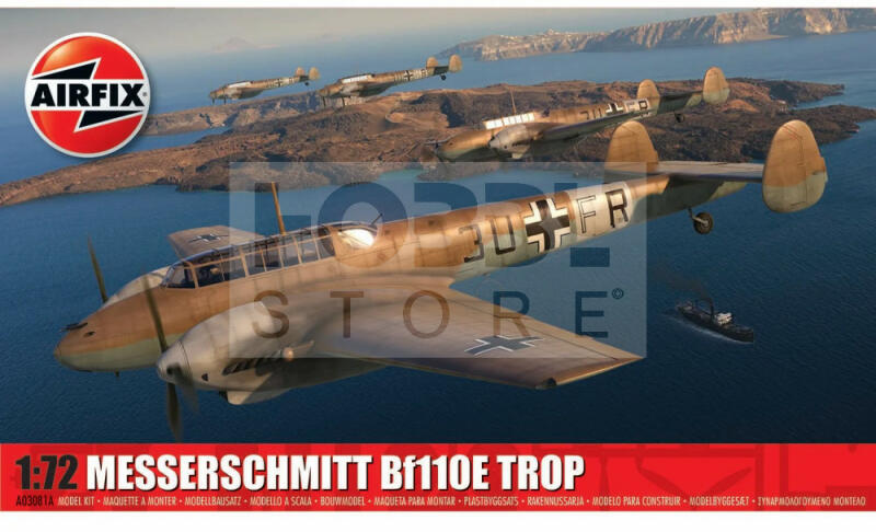 Airfix - Messerschmitt Bf110E/E-2 TROP repülőgép makett 1:72 (A03081A) Makett méretarány: 1:72 Alkatrész darabszám: 108 Makett hossúság: 16,76 cm Festést és ragasztást igénylő műanyag makett. A szükséges kiegészítőket, mint festék, ragasztó a készlet nem tartalmazza . Gyártó: Airfix Az Airfix egy tradicionális brit fröccsöntött műanyag makett gyártó cég. Az Egyesü