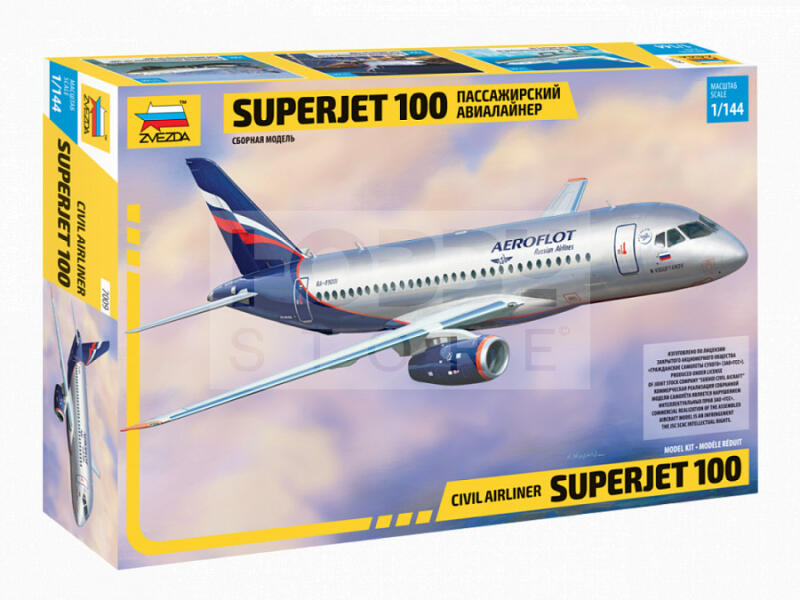 Zvezda Sukhoi Superjet 100 1:144 makett (7009Z) Makett méretarány: 1:144 Alkatrész darabszám: 47 Makett hosszúsága: 20,8 cm A Zvezda a kiváló műanyag modelljei kapcsán vált világszerte ismerté. Makettei a legnépszerűbb méretarányokban érhető el. Elsősorban 2. világháborús gépezetek és kiegészítőik kapcsán érdemes megemlíteni a nevét, de a történelmi makettekből i
