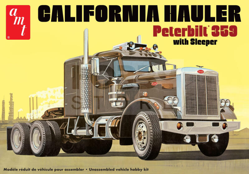 AMT PETERBILT 359 CALIFORNIA HAULER W/SLEEPER 1:25 autó makett AMT1327 Szeretenél egy igazi amerikai izomautót építeni? Nos, az AMT makettek széles palettáján szinte csak ilyeneket fogsz találni. Az AMT amerikai makett gyártó mely kifejezetten autó makettek gyártásával foglalkozik az 30-60 évektől indulva napjainkig. Az autók mellett természetesen megjelennek a szortimentben a S