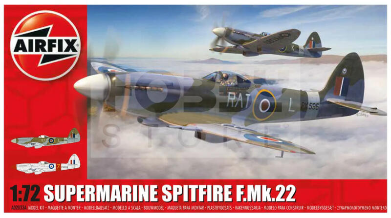 Airfix Supermarine Spitfire F. 22 repülőgép makett 1:72 (A02033A) Makett méretarány: 1:72 Alkatrész darabszám: 49 Makett hossúság: 14 cm Festést és ragasztást igénylő műanyag makett. A szükséges kiegészítőket, mint festék, ragasztó a készlet nem tartalmazza . Gyártó: Airfix Az Airfix egy tradicionális brit fröccsöntött műanyag makett gyártó cég. Az Egyesült Királ