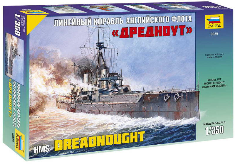 Cikkszám: 9039 Zvezda Festést, ragasztást igénylő makett. A Dreadnought elnevezés egyet jelent a félelem nélküli fogalmával. A brit hadihajó gyártása 1906-ban kezdődött világszerte, forradalmi hatások következtében. A hajó 10db 305mm-es, 28db 76mm-es ágyúval, és 5db torpedó kilövővel volt felszerelve. Méretarány: 1:350 Gyártó: Zvezda