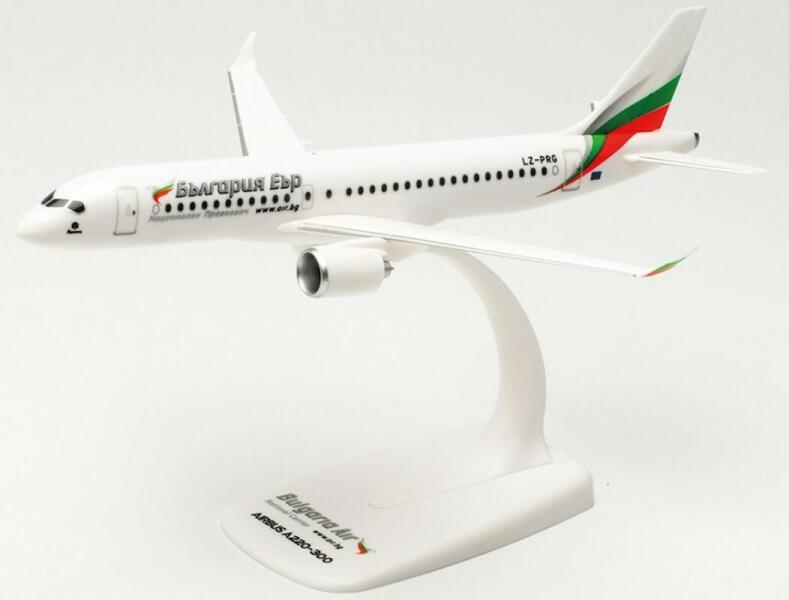 Airbus A220 Bulgaria Airrepülőgép modell. Kiváló minőségű műanyag (PPC) repülőgépmodell, melynek alkatrészei ragasztás nélkül illeszthető egymáshoz. Modern nyomdai nyomtatási technológiával gyártva. A modell tartó állvánnyal rendelkezik, futóművek nincsenek. Anyaga: műanyagMérete: 19,4 cmModelljeink épségét a szállítás előtt ellenőrizzük, majd a dobozt védőz