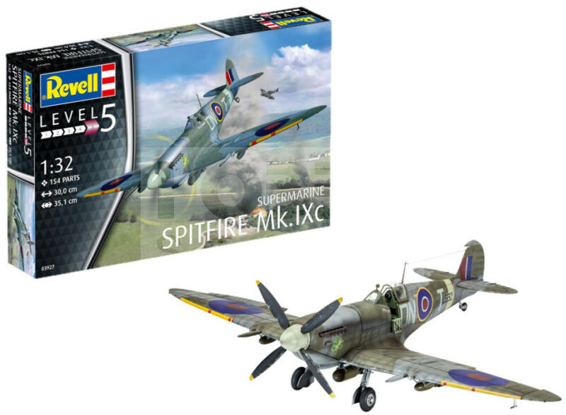 Revell Spitfire Mk. IXC 1:32 repülő makett 03927R Makett méretarány: 1:32 Alkatrész darabszám: 154 Makett hossúság: 30 cm Festést és ragasztást igénylő műanyag makett. A szükséges kiegészítőket, mint festék, ragasztó a készlet nem tartalmazza . Gyártó: Revell A Revell tradicionális nagy múltú makett gyártó. Már több mint 60 éve kápráztatja el a rajongóit terméke