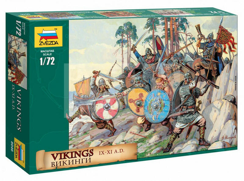 Zvezda Vikings /i. u. 900-1100/ makett 1:72 (8046Z) Makett méretarány: 1:72 Alkatrész darabszám: 41 Makett hosszúsága: 2,4 cm A Zvezda a kiváló műanyag modelljei kapcsán vált világszerte ismerté. Makettei a legnépszerűbb méretarányokban érhető el. Elsősorban 2. világháborús gépezetek és kiegészítőik kapcsán érdemes megemlíteni a nevét, de a történelmi makettekből