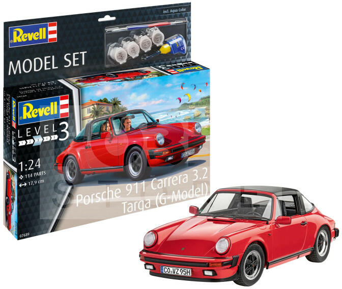 Revell Model Set Porsche G Modell Targa 1:24 autó makett 67689R Makett méretarány: 1:24 Alkatrész darabszám: 114 Makett hossúság: 17,9 cm Festést és ragasztást igénylő műanyag makett. A készlet az alap színeket (Revell Aqua Color), ragasztót illetve ecsetet tartalmaz . Gyártó: Revell A Revell tradicionális nagy múltú makett gyártó. Már több mint 60 éve kápráztatja el a